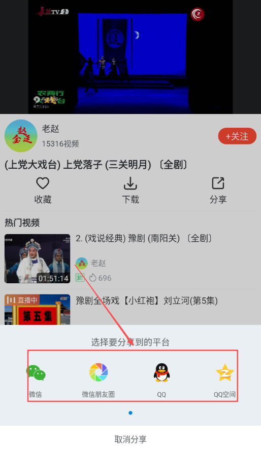 4、观看过程中或结束后可通过分享功能将节目链接一键发送至微信、朋友圈或QQ等社交平台,与同好交流分享。