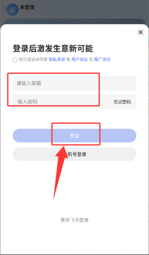 2、输入邮箱与密码后点击登录,完成账户验证流程。