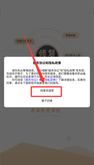 1、点击同意并接受按钮进入。