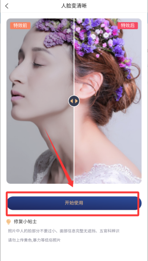 3、【在线修复老照片】利用人工智能技术,可以将模糊照片、低清照片、斑驳痕迹修复,并针对面部进行了高清还原修复。