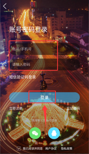 2、在账号密码登录页填写账号或手机号与密码,点击登录完成账号操作。