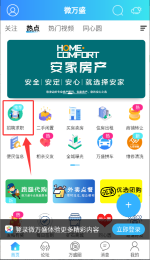 3、进入首页点击招聘求职选项,即可查看或发布相关招聘求职信息。