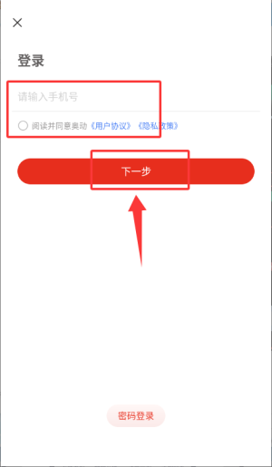 2、输入手机号并同意协议,继续登录流程。