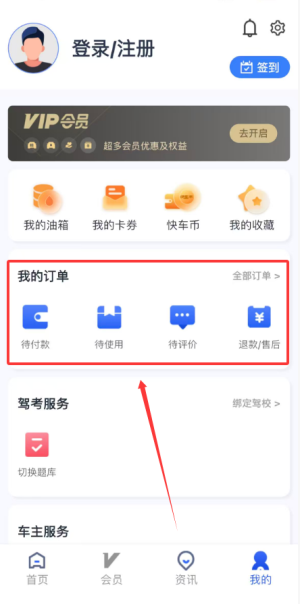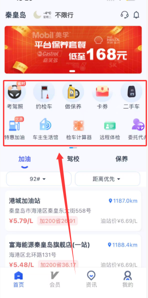 3、首页提供驾照考试服务、车辆年检预约、保养项目、优惠卡券、二手车及车主生活馆等功能。