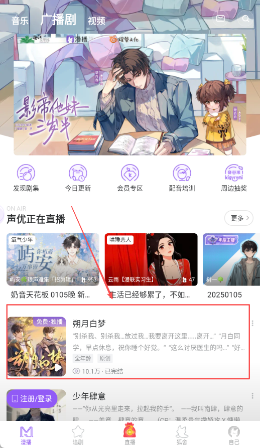 2、在首页浏览海量广播剧资源,选择感兴趣的剧集点击查看详情,了解作品信息和声优阵容。
