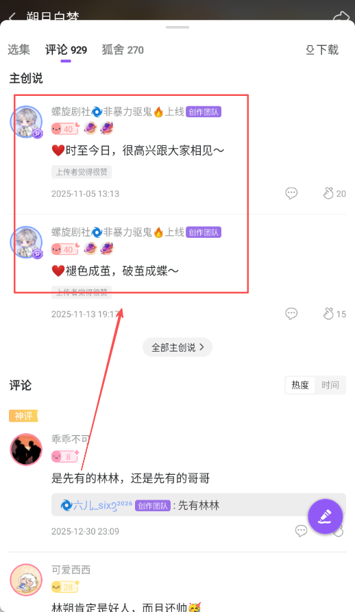3、点击播放按钮开始收听广播剧,观看字幕内容,查看其他用户发送的弹幕评论参与互动。