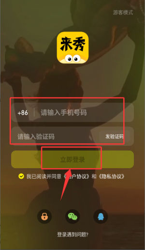 2、在登录页填写手机号与验证码,点击红色立即登录按钮完成操作。