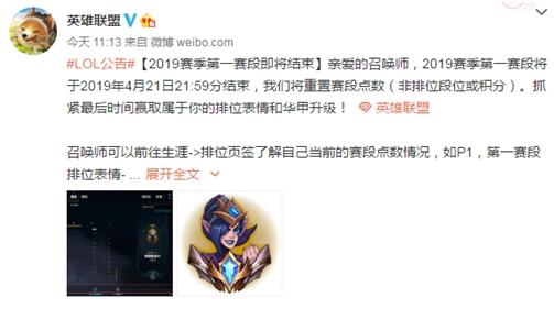 在S9赛季中拳头是增加了“黑铁”和“宗师”两个段位,也是推出了独特的排位赛赛段机制。而现在英雄联盟官方就发布公告::2019赛季第一赛段将于2019年4月21日21:59分结束,将重置赛段点数(非排位段位或积分)。